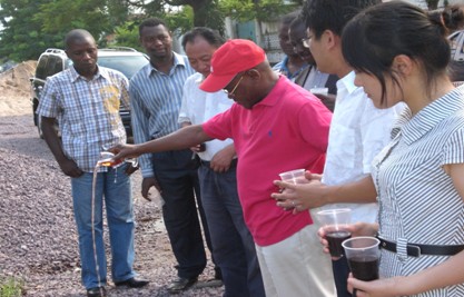 參加慶典的人員有:NGANLALI公司的業(yè)主、原剛財政部部長邦古里先生及其公司的主要負責人,集團海外公司的項目經(jīng)理吳桂濤先生及項目工程技術人員。在項目部的陪同下,業(yè)主參觀了整個大樓主體,參觀完后,部長高興地說道:“你們的工程質量和速度都是很好的,在剛果(金)實為少見!祝賀你們!”