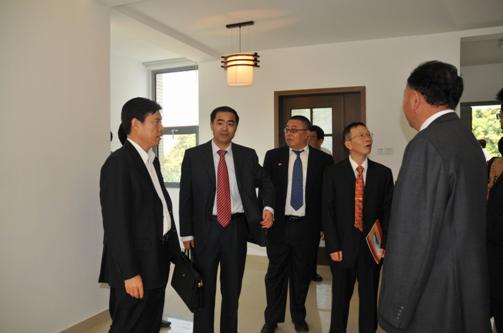 儀式結(jié)束后,鐘山副部長(zhǎng)親切接見了江蘇省建集團(tuán)副總裁兼海外公司總經(jīng)理張三旗,聽取了項(xiàng)目組關(guān)于項(xiàng)目施工情況的匯報(bào)。隨后,鐘山在吳澤獻(xiàn)、魏勝梓、張三旗和項(xiàng)目組主要負(fù)責(zé)人的陪同下,參觀了新落成的館舍。