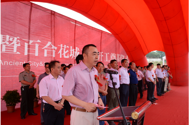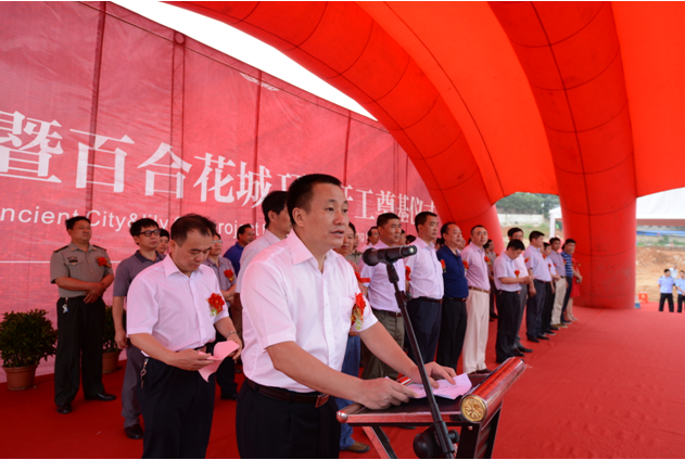 萬載縣委書記胡新民代表萬載縣四套班子對項(xiàng)目的開工建設(shè)表示熱烈祝賀。胡新民說,萬載古城·百合花城項(xiàng)目,是我縣發(fā)展旅游經(jīng)濟(jì)的一個重大突破,也是我縣旅游開發(fā)的重點(diǎn)項(xiàng)目之一,具有巨大的經(jīng)濟(jì)效益、社會效益和環(huán)境效益,對推動經(jīng)濟(jì)可持續(xù)發(fā)展具有重要意義。2013年,我們開始對外招商,最終選定了江蘇省建集團(tuán)。不僅僅因其是建筑行業(yè)的先驅(qū),更重要在于,江蘇省建品質(zhì)至上的理念使我們更加信賴。我們相信,在未來的幾年,萬載古城·百合花城項(xiàng)目將會建成一個大型的4A級旅游綜合體,它將成為萬載在旅游行業(yè)的一張嶄新的名片,將萬載推向全國乃至全世界。