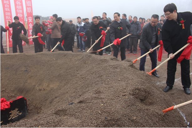 ■出席儀式的領(lǐng)導(dǎo)為項(xiàng)目奠基培土