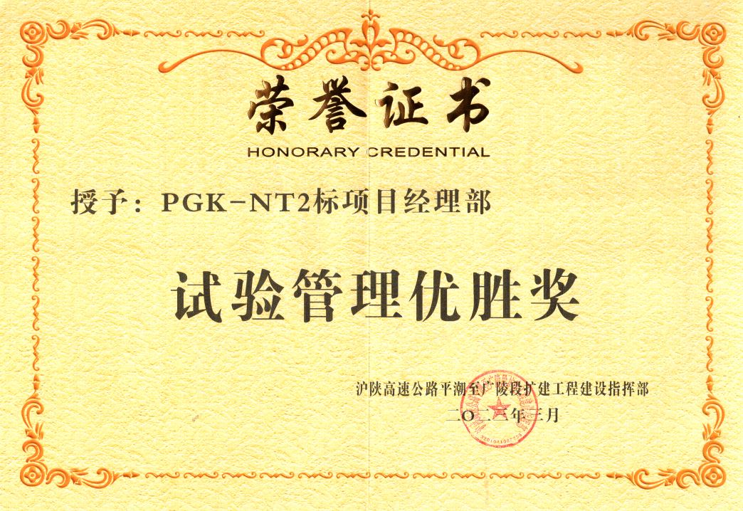 █項目部獲試驗管理優(yōu)勝獎